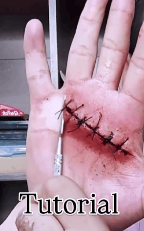Um vídeo que está circulando nas redes mostra um homem ensinando como fazer uma ferida falsa super realista, tudo com cola, tinta vermelha e um pouco de talento pra drama.
